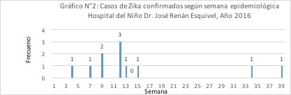 La distribución de los casos de Zika según semana epidemiológica se presenta en la siguiente gráfica: